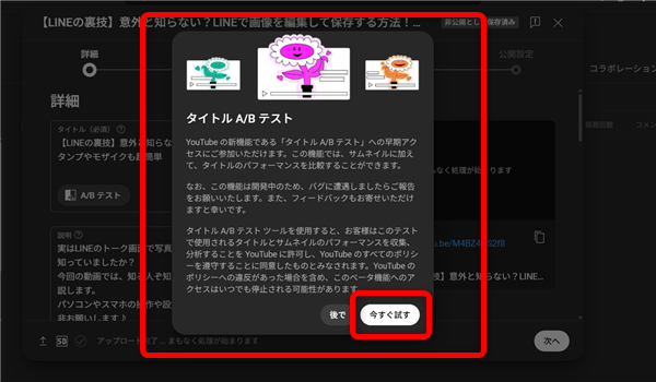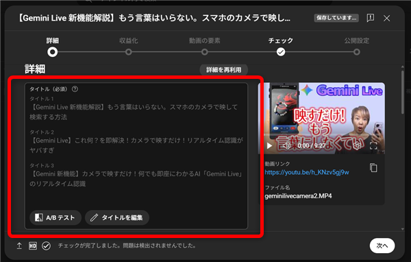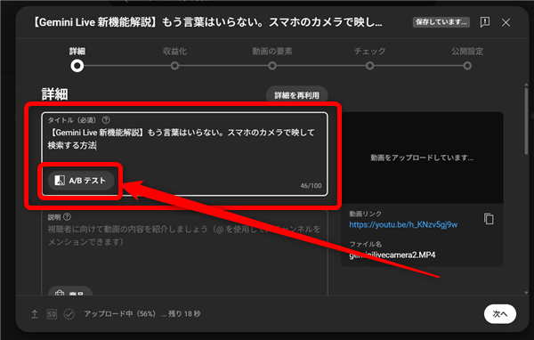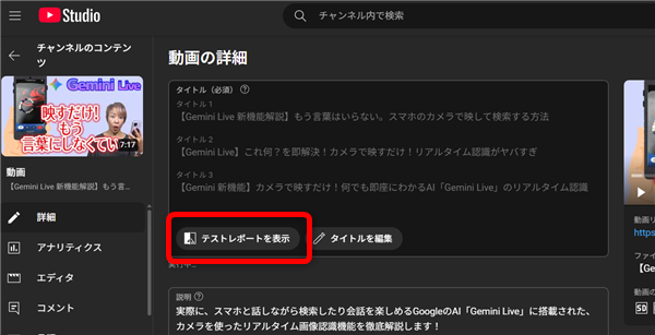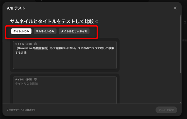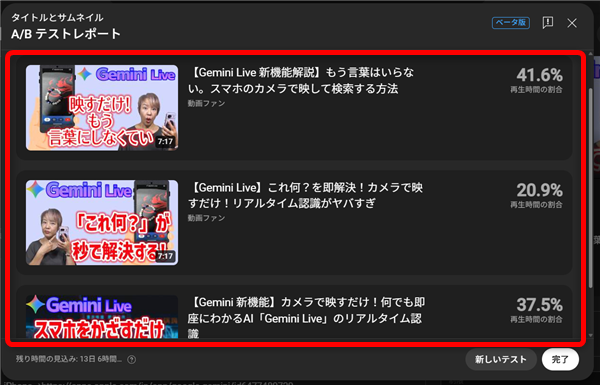 タイトルとサムネイルのA/Bテストをしている動画は、