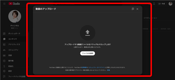 まずはいつも通り動画をアップロードしていきます。