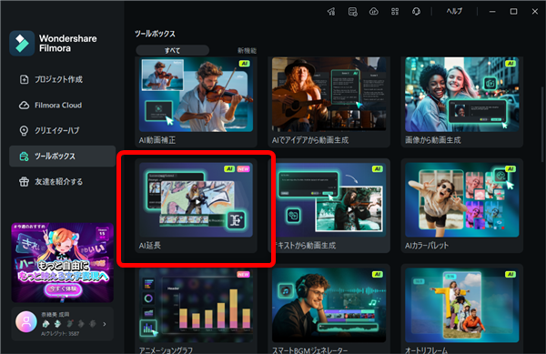 ここでは、目玉の新機能「AI延長」機能を紹介します。