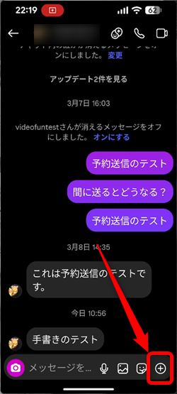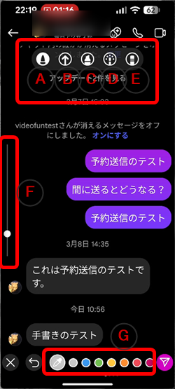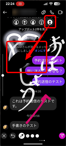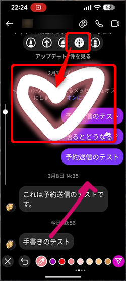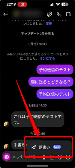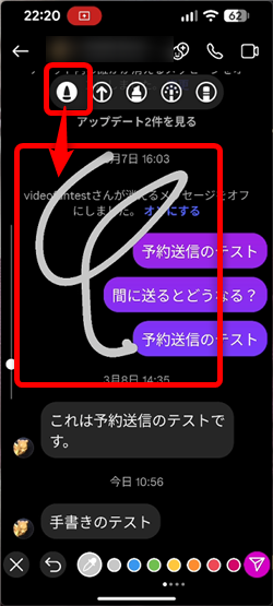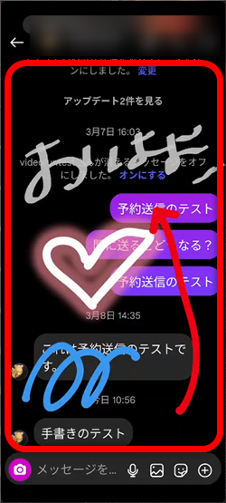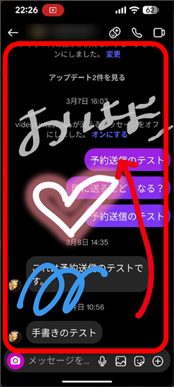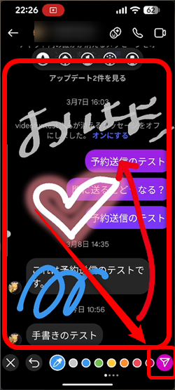 ダイレクトメッセージの画面に手書きでメッセージを自由に書くことができます。