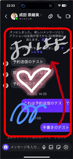 次回、このメッセージ画面を開くと、再度、手書きのメッセージが表示されます。