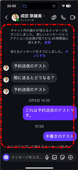 このとき、送信者側の手書きのメッセージは削除されません。