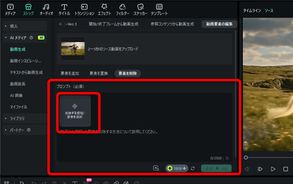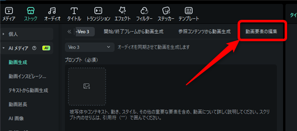 ここでは「AIプロンプト動画編集」について紹介します。