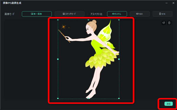 こちらの画面が開くので、枠内に対象物が収まるように選択して「送信」をクリック