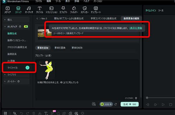 しばらく待っていると動画が生成され、このような表示が出てきます。