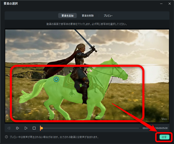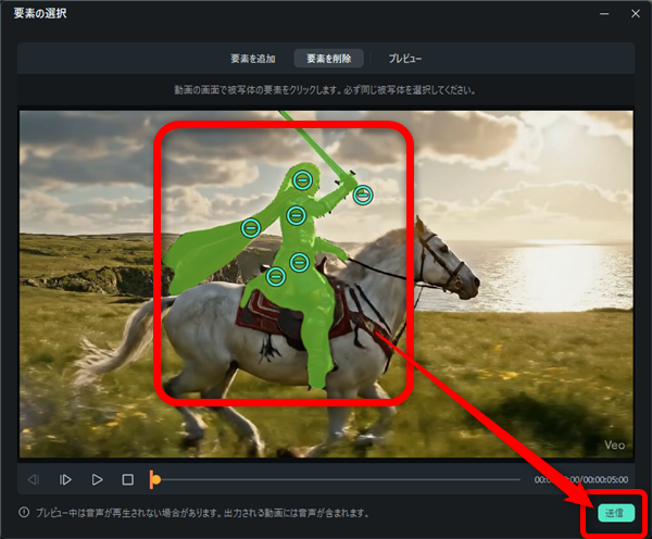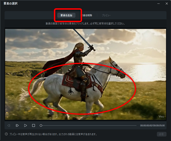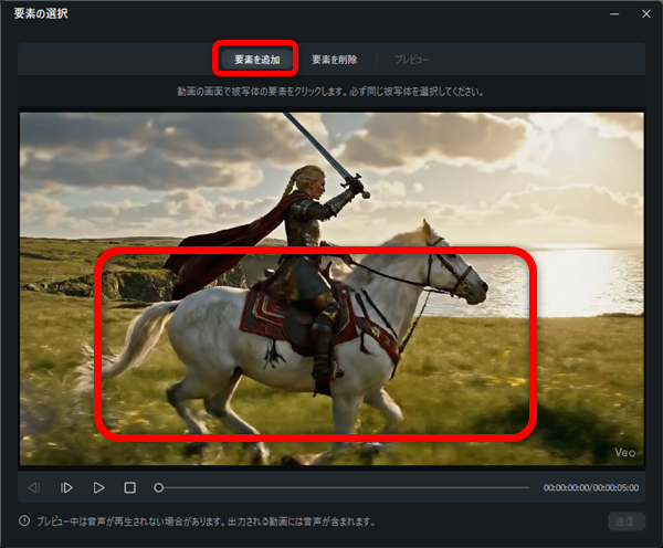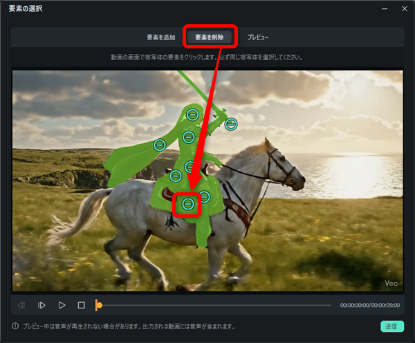 要素を削除では動画の中の人や物を削除することができます。