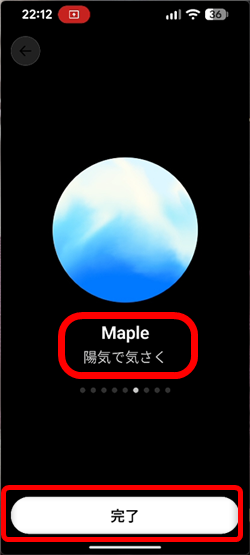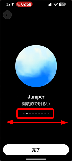 画面のスワイプで音声を切り替えて、サンプルを聞いてよろしければ「完了」をタップ