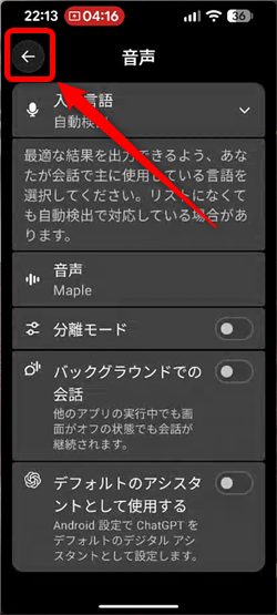 こちらの画面に戻るので、画面左上の「←」をタップして設定完了です。