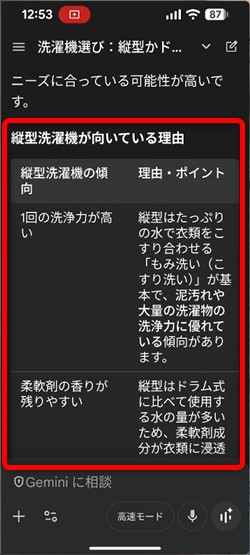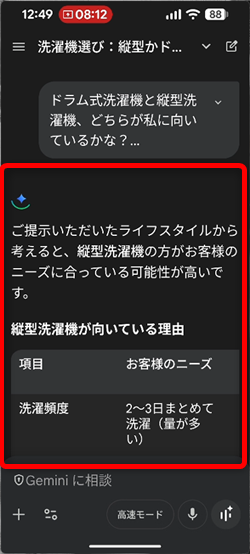 比較して検討するのもGeminiに相談すればどちらが自分にあっているのか?を