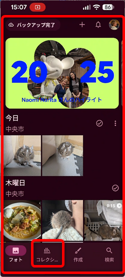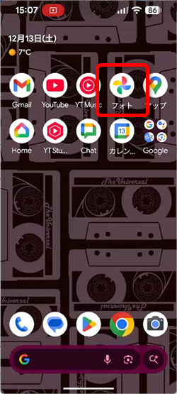 ここでは例としてGoogleフォトアプリを使っていますが、お使いのフォトアプリを