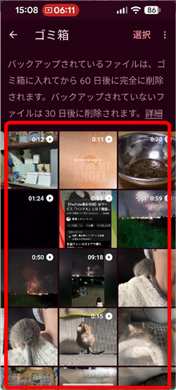 iPhoneもゴミ箱に入った写真や動画がありました。