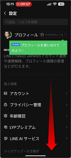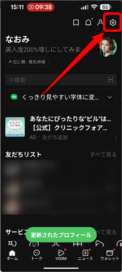 Androidでは一番下に、iPhoneでは下から3つ目にあります。