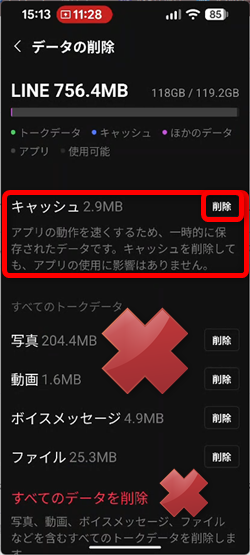 毎日のように使っているLINEにはキャッシュが溜まっている可能性が高いです。