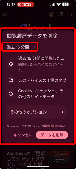 過去〇〇期間を選択できますので、期間を選択して(すべてを削除する場合は「全期間」を選択)