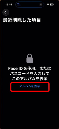 FaceIDなどでロックを解除してゴミ箱を開くと、