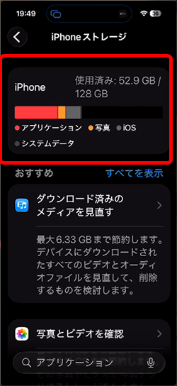 写真を100枚消すより、長い動画を1本消すほうが効果的です。