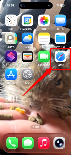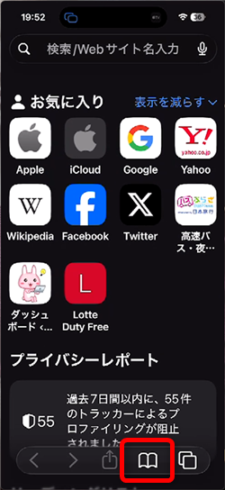 Safariを起動して画面右下の本の形のアイコンをタップ