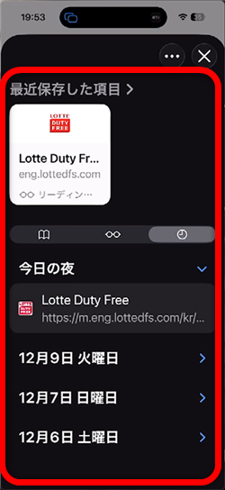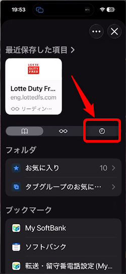 こちらの時計のマークをタップして閲覧履歴を開きます。