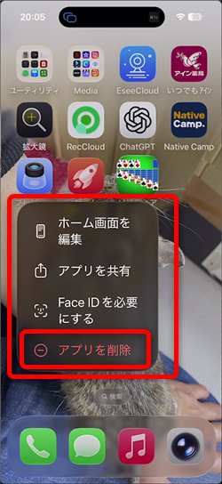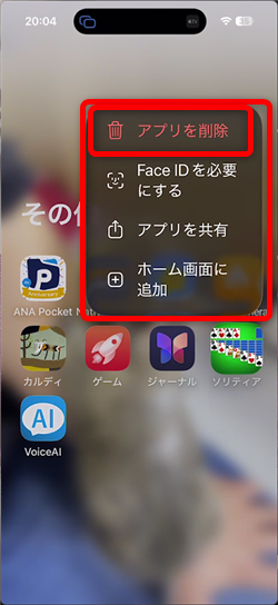 ホーム画面にある場合、ホーム画面にはない場合、それぞれいらないアプリを長押しすると