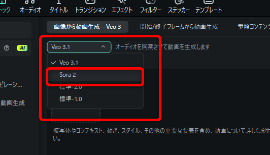 ところが!動画編集ソフト「Filmora」の中で「sora2」が利用できるようになり