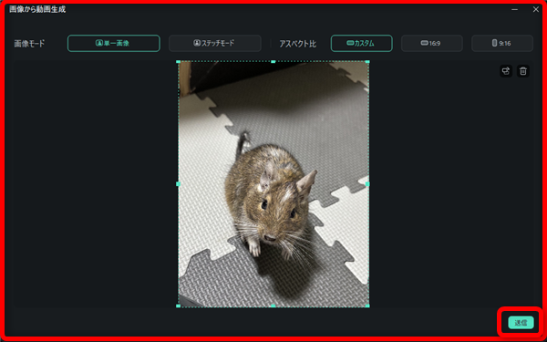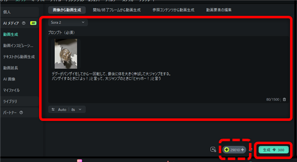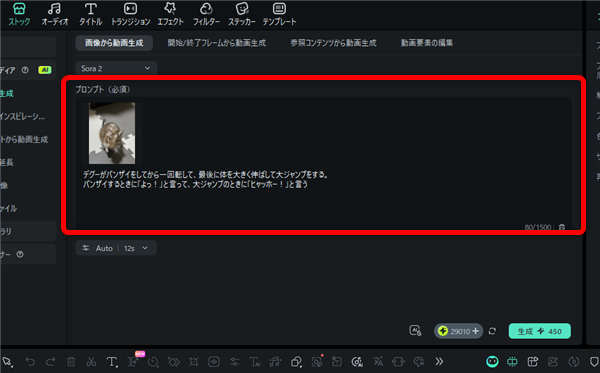 続いて、選択した画像をどのように動かしたいのか、指示する説明文「プロンプト」を