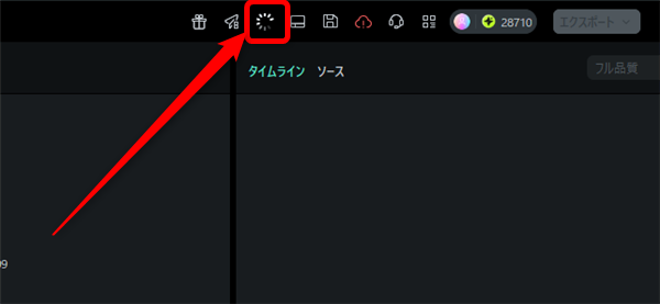 生成中はFilmora画面右上のこちらがクルクルと回転しています。