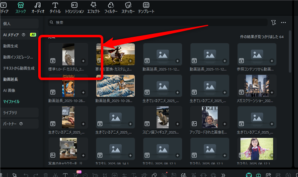 動画が完成すると、画面左側メニューの「マイファイル」にこのような表示が出るので