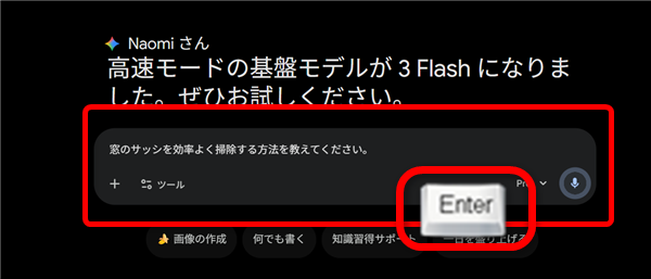パソコンでGeminiを開いたとき、プロンプト入力欄にこのように