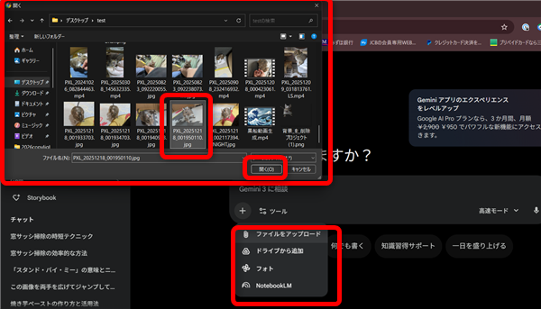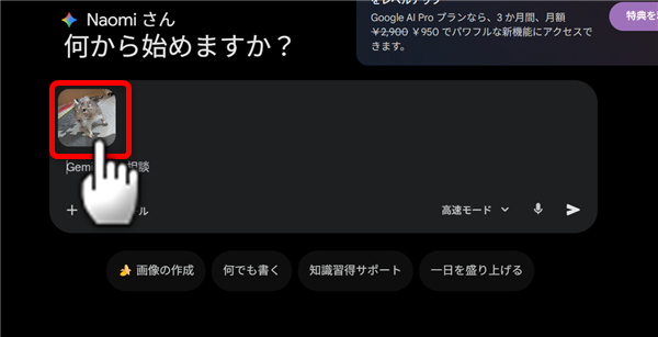 Geminiを開いて「画像の作成」をクリック