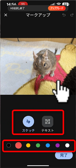 このような別の画面が開いて、ここで画像に直接書き込みができます。