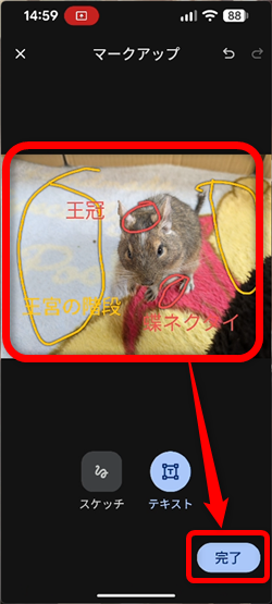 書き込みはこんな感じで落書きのような書き込みでも、まるで囲ったりしてOK