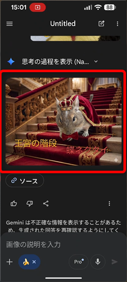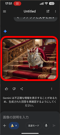 元のプロンプト入力の画面に戻るので、このまま送信ボタンを押してしまってOK。