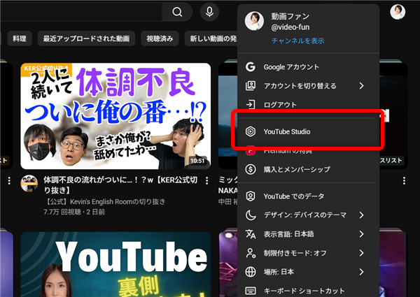 YouTube Studioを開きます。