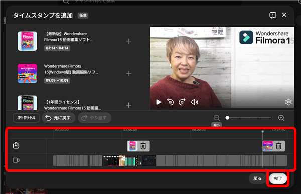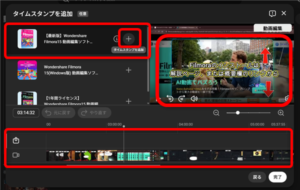 再生位置を合わせたら、そこで対象商品の「+」ボタンをクリック