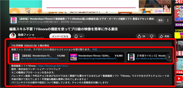 これまで、商品紹介などをやってきたクリエイターさんは、動画の概要欄に、