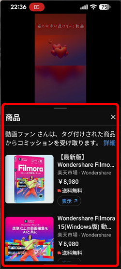 ならなかったのですが、この機能により、動画内で紹介している商品を
