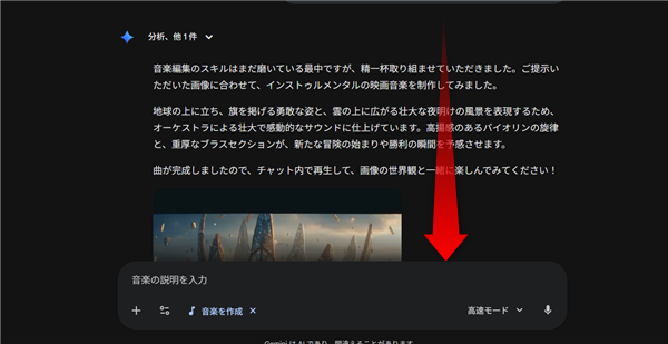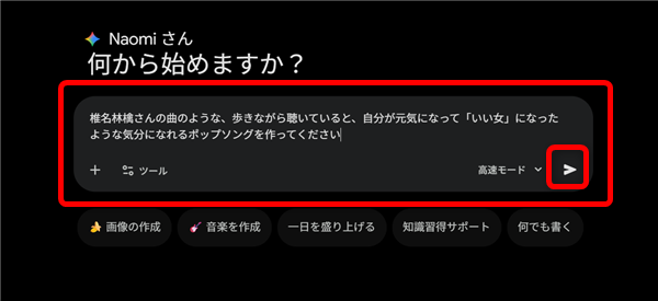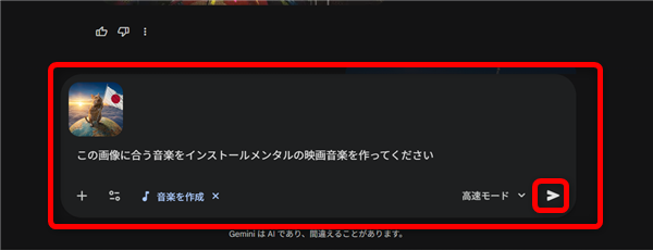 プロンプト入力欄には、できるだけ詳しくどんな音楽を作りたいのか?