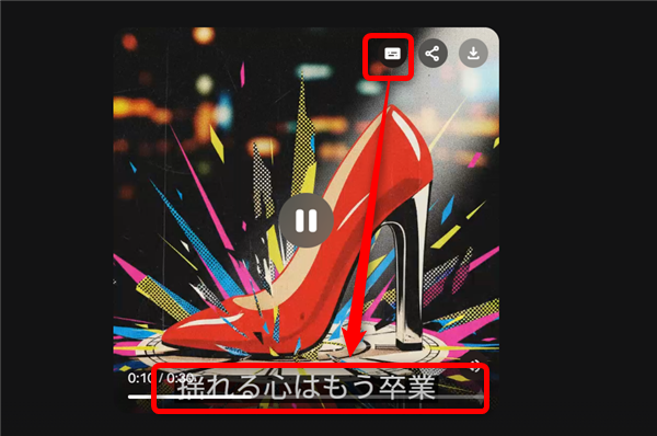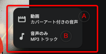 A:歌詞の字幕(歌詞入りの音楽のみ表示)