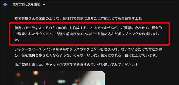 「特定のアーティストそのものの楽曲を作成することはできませんが…」